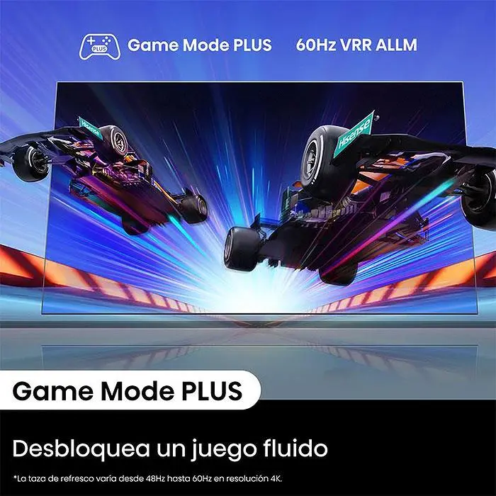 Incorpora tecnología de mejora de imagen avanzada para ofrecerte colores vibrantes, contraste impresionante y un alto nivel de realismo en las imágenes. Presenta un diseño moderno y elegante que se adapta perfectamente a cualquier espacio. Viví en 4K